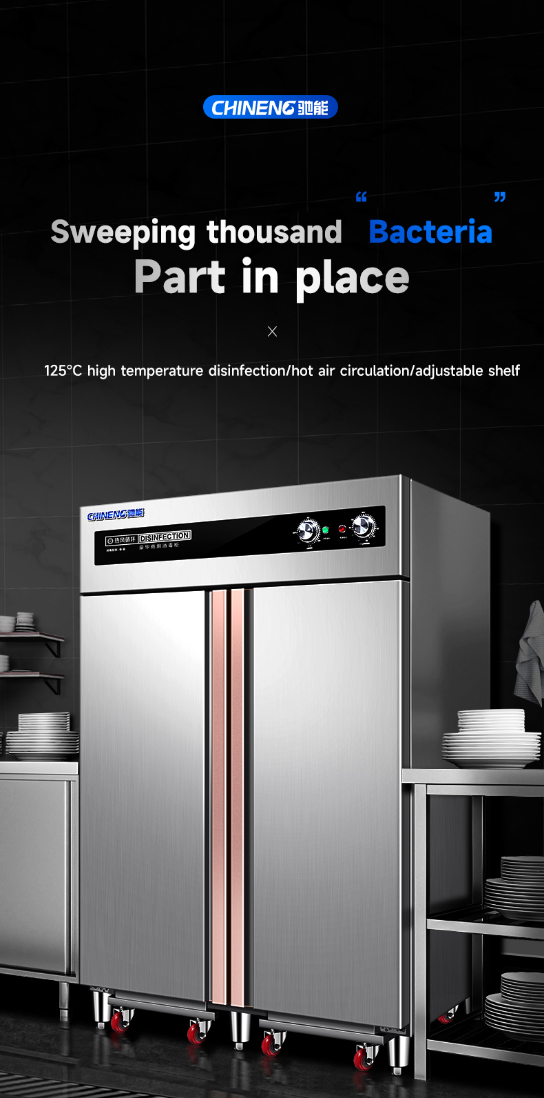 Sterilization method: Medium temperature + high temperature + hot air circulation