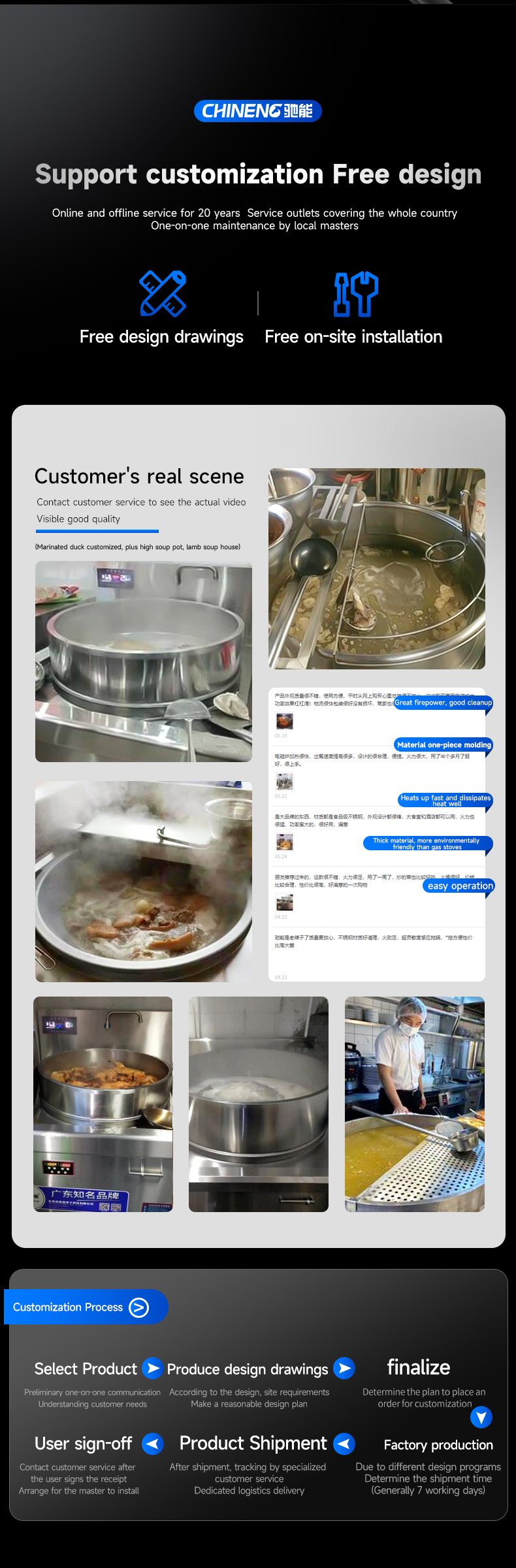 CHINENG will upgrade the product specifications from time to time according to the market feedback. The parameters on the page may not be updated in time, so the specific parameters are based on the real products. At the same time, there are many kinds of commercial kitchen equipment, and some products do not appear on the page. If you have equipment needs or customized services, please add the customer service WeChat below for detailed consultation. Thank you for coming!